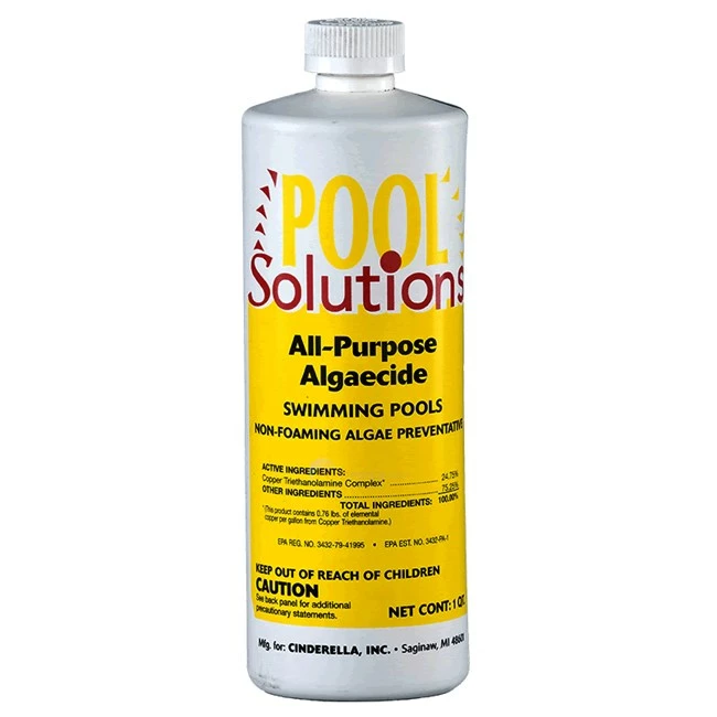 Pool Solutions all-purposealgaecide is ahighqualitycopperalgaecide that eliminates most algae in a matter of hours .Thiscopperbasedalgaecide is safe to swim immediately after treatment and provides exceptional algae control with small dosages.